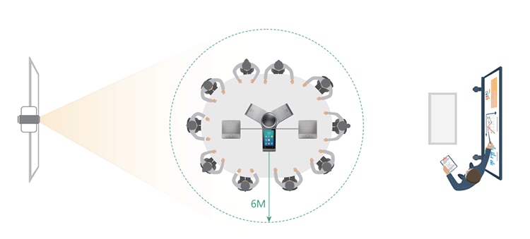 VC200采用UltraHD 4K超清鏡頭,支持4倍數(shù)碼變焦及電子云臺,搭配103°超大水平視角,會議室全景視野盡收眼底。支持1080P30幀的視頻通話,最高可抗30%視頻丟包,即使會議室網(wǎng)絡(luò)情況不佳也可帶給您暢快視訊體驗。