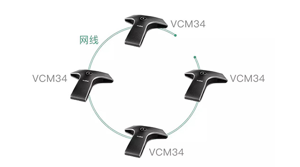- 最多可級聯(lián)4臺VCM34,滿足多種規(guī)模會議室收音需求