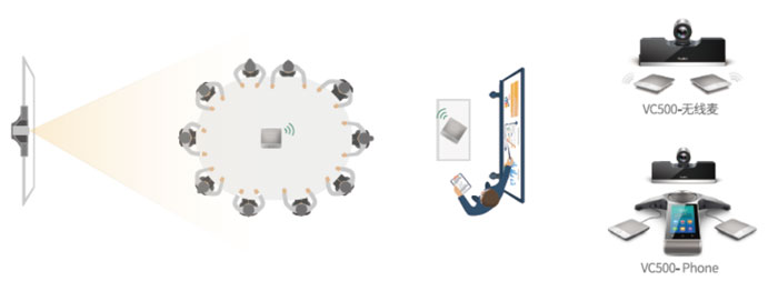 億聯(lián)VC500-無線麥版本:配備2個無線麥克風(fēng),長達10米的傳輸距離,穩(wěn)定可靠,可在整個會議室中靈活移動使用,保障最優(yōu)會議效果,同時使會議桌面更簡潔