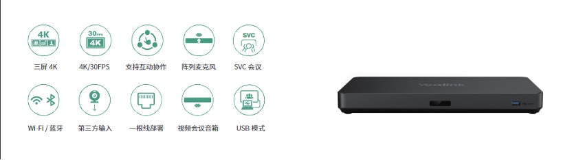億聯(lián)新一代視頻會議主機,適用于大會議室及集成,支持 4Kp30 超高清視頻通話及內(nèi)容分享;支持三屏 4K 顯示,并可以自由的選擇和放大顯示的內(nèi)容;可搭配 36 倍混合變焦的新一代 4K 超清云臺攝像機,同時也支持第三方攝像機輸入;能抵抗 30% 的視頻丟包,不花屏;搭配級聯(lián)陣列麥克風,內(nèi)置三麥矩陣,單個麥克風支持長達 6 米的 360°優(yōu)質(zhì)拾音;搭配億聯(lián)新推出的視頻會議音箱,打造專業(yè)的聲音體驗。通過 VCH 接口集數(shù)據(jù)傳輸、信號控制和供電于一體,實現(xiàn)配件與主機之間只需要通過一根網(wǎng)線即可完成連接,有效降低部署成本;支持有線輔流和無線輔流等多種輔流輸入方式,能適配各種電腦;支持 H.323/SIP 雙協(xié)議,深度集成于億聯(lián)視頻會議服務器和億聯(lián)云視訊服務。