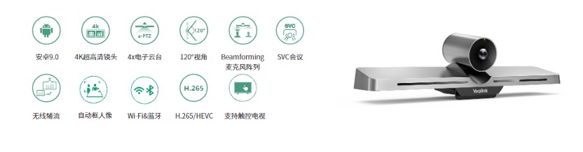 VC210定位于小微型會(huì)議室,采用4K超清鏡頭,120°超大水平視角,同時(shí)采用H.265/HEVC視頻編解碼,可實(shí)現(xiàn)4K30超高清視頻通話,可抵抗30%的視頻丟包。內(nèi)置6個(gè)Beamforming陣列麥克風(fēng),結(jié)合全新音頻算法,支持定向拾音,智能消噪技術(shù),讓5米范圍內(nèi)的發(fā)言者聲音更加清楚。與億聯(lián)云視訊服務(wù)深度集成,用戶可輕松實(shí)現(xiàn)一鍵入會(huì)。采用六合一的一體化設(shè)計(jì),集成編解碼器、攝像機(jī)、麥克風(fēng)、掛架、Wi-Fi、藍(lán)牙,支持無線輔流,支持觸控電視,只需要兩根線材即可完成部署。