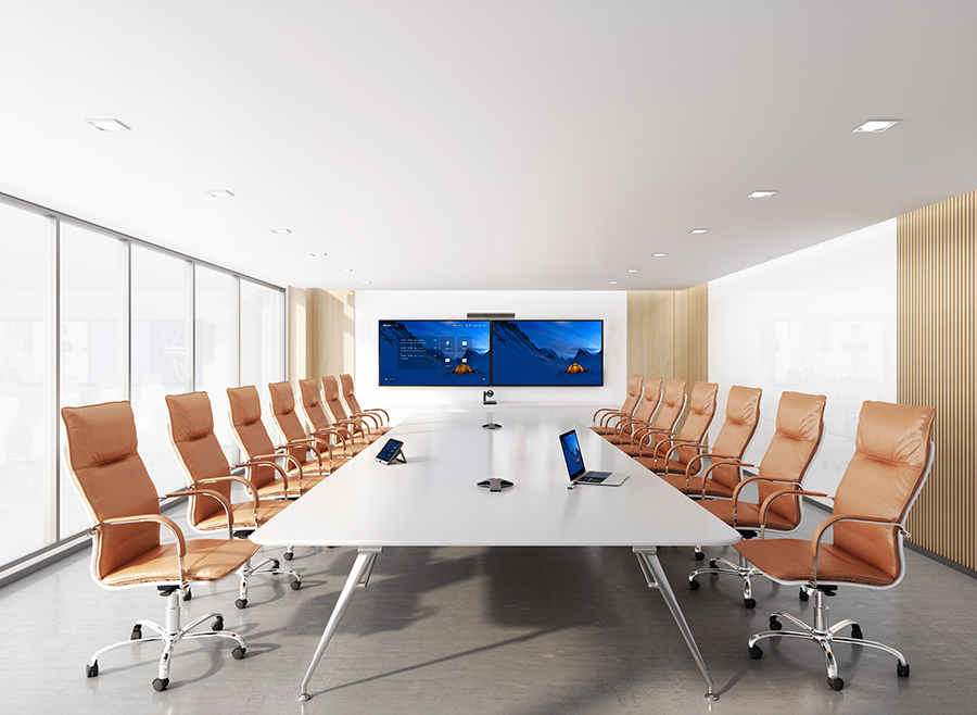 可根據(jù)會議室布局選擇最恰當(dāng)?shù)牟渴鸱桨?。一?CAT5e 連接電視區(qū)和桌面區(qū),完成數(shù)據(jù)傳輸及供電,無需額外的電源或延長線,簡化